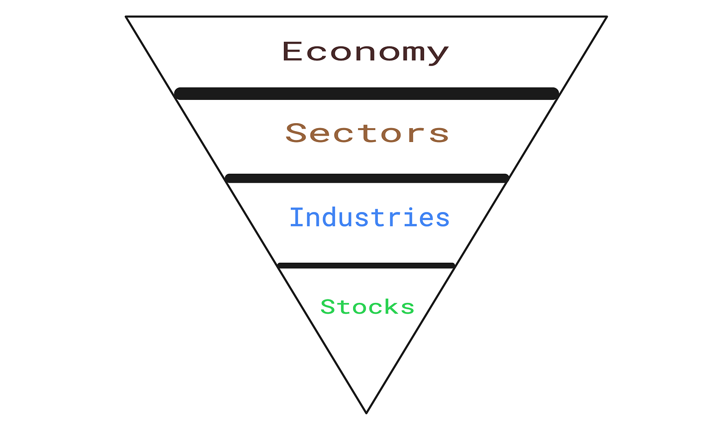 The starting point for generating trade ideas comes from a broad analysis of the economy. After that, you need to filter down from the economy to the individual stocks.